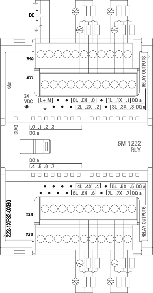 222-1XF32-0XB0Specifications:Product Description: SM 1222 8 DO, relay changeover contactDimensions W x H x D(mm): 70 x 100 x 75Wiring: